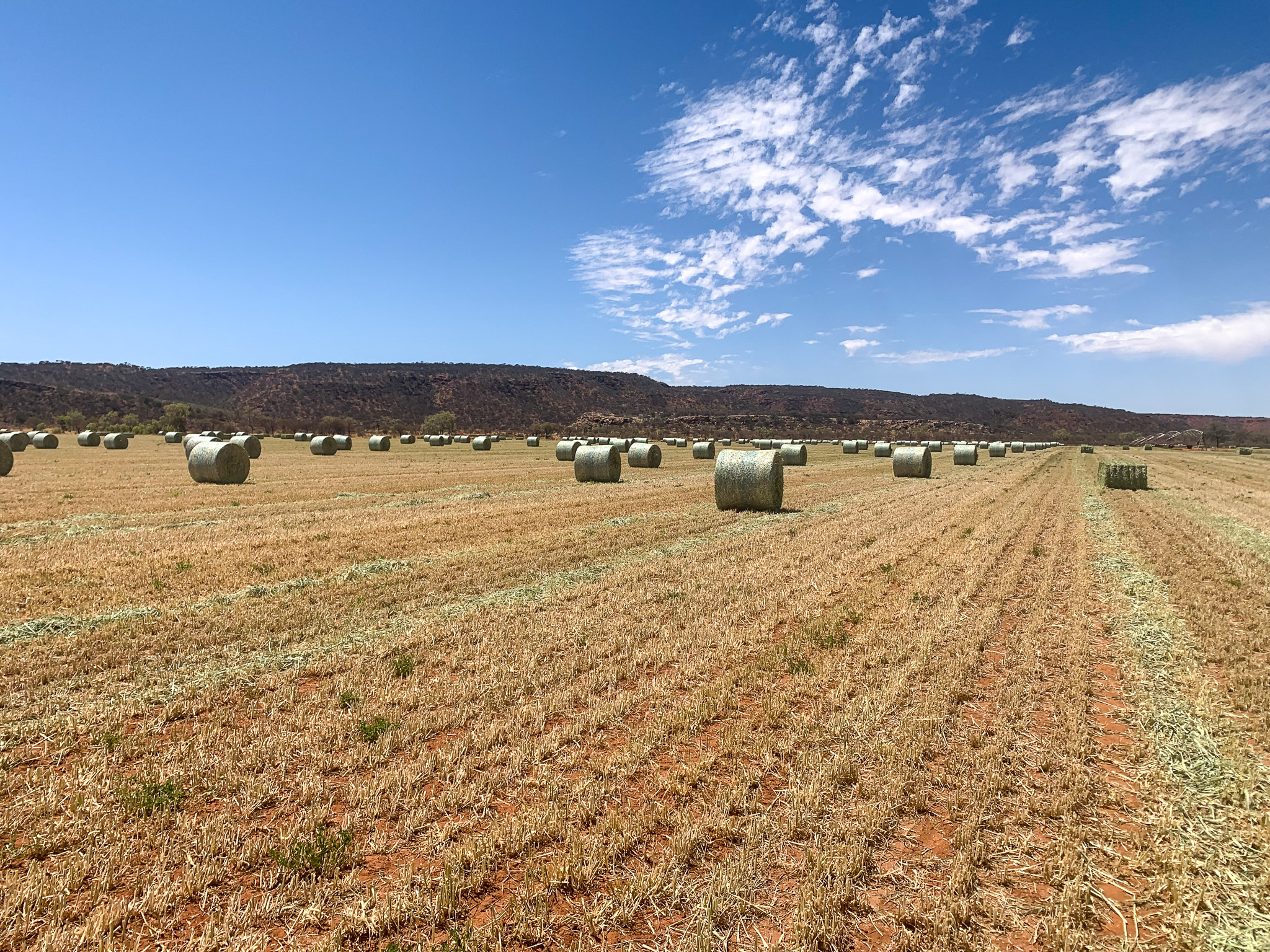 ORANGE CREEK HAY FARM • Orange Creek Hay Farm comprises a 135* hectare freehold landholding and is complementary to Orange Creek Station, utilised for the production of up to ten* crops of lucerne per annum and rotational crops including sorghum in the summer and oats and wheat in the winter • 52* hectares have been developed under two centre pivots, further supported by a 1,010* megalitre groundwater extraction licence and a ring main water distribution system connected to three irrigation bores powered by two 70* kilowatt solar systems during the day pumping 40* litres per second with a diesel generator used at night • Expansion opportunities include headworks for 10 additional 20* hectare centre pivots and an additional 500* megalitres of water will be granted with the development of each pivot